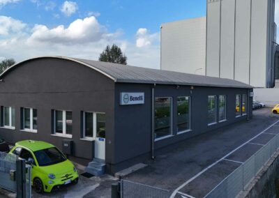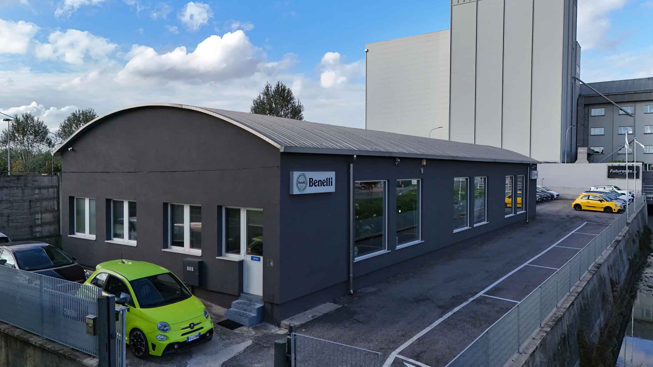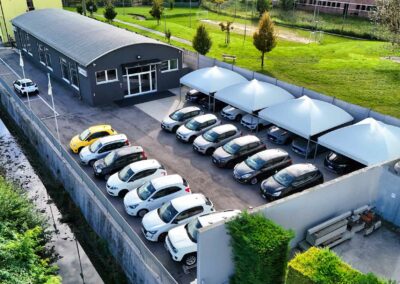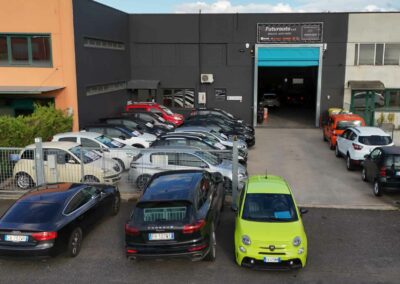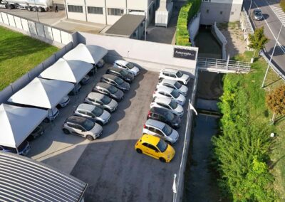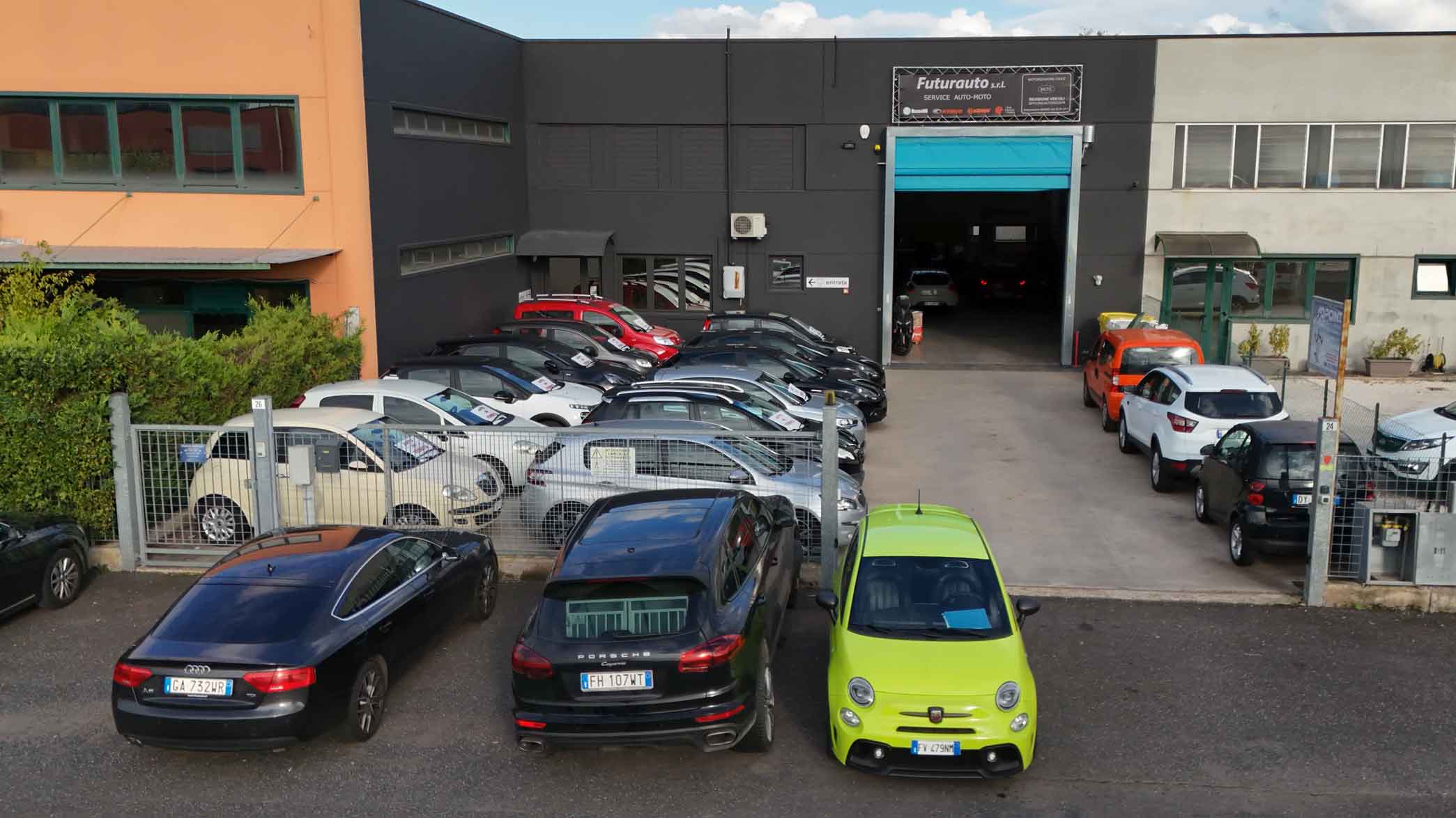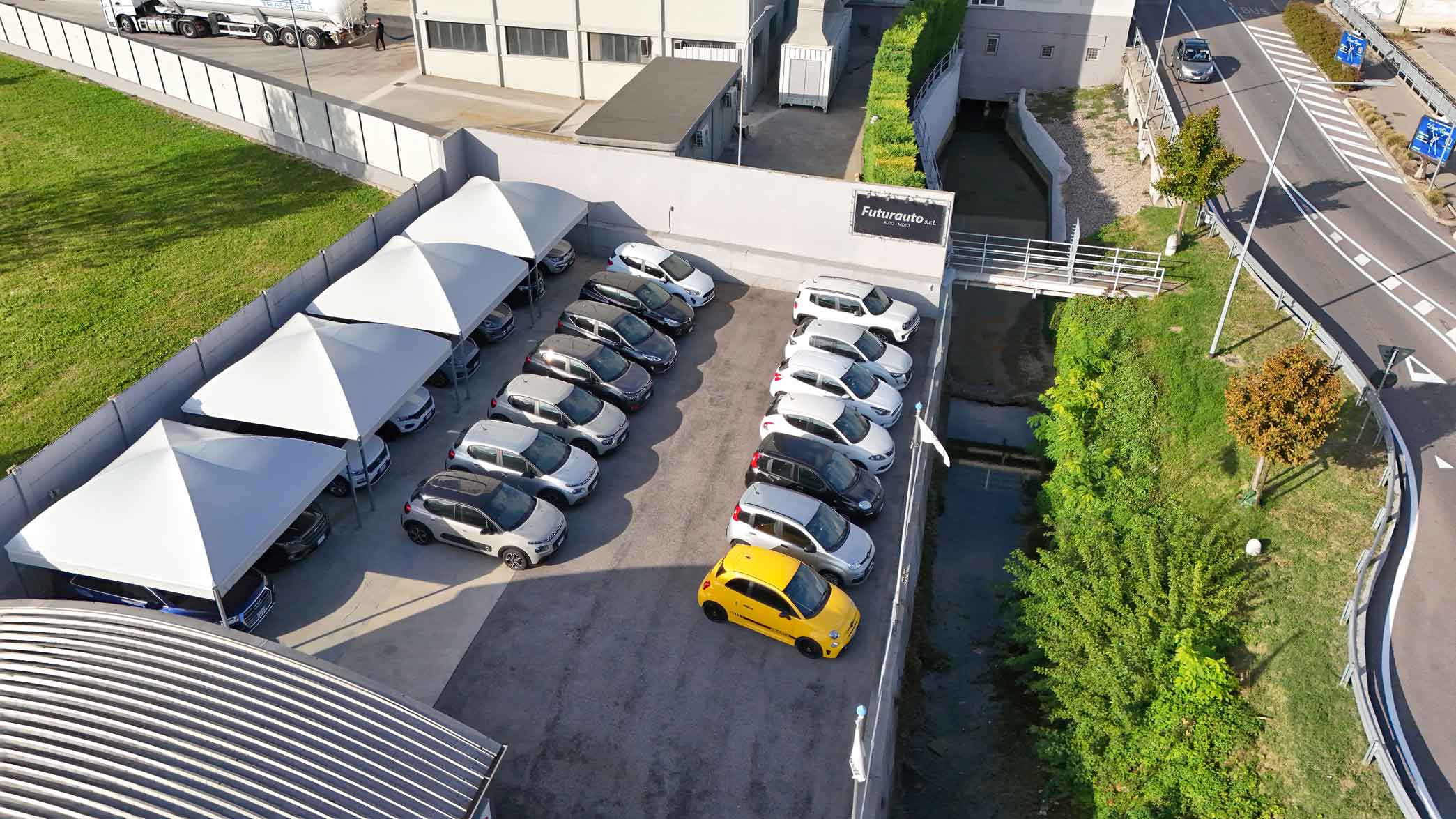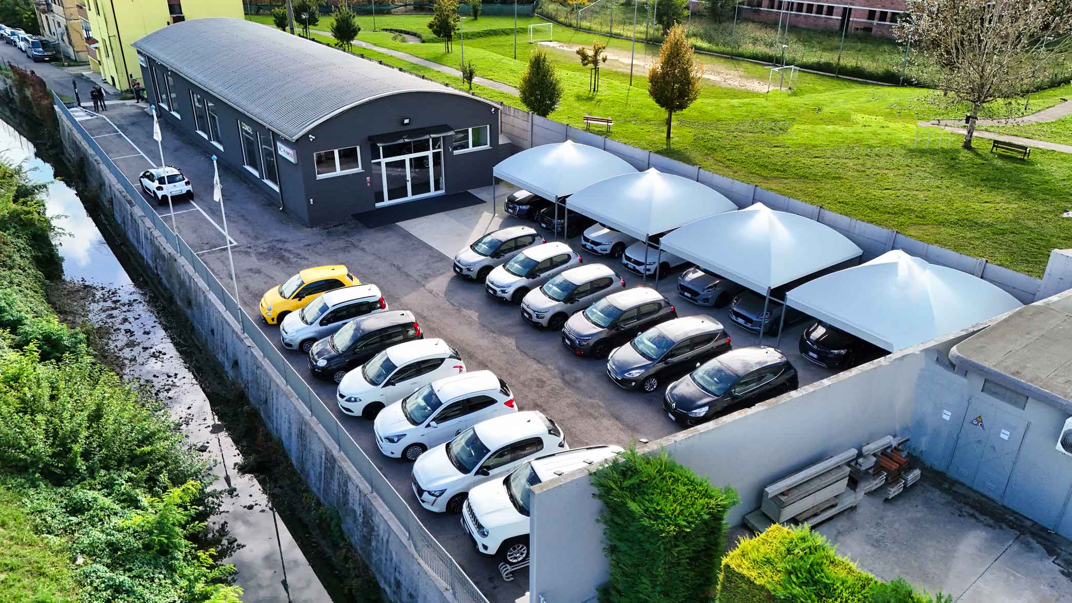 All’esterno troviamo i gazebi e il piazzale dove sono esposte le vetture nuove e usate.