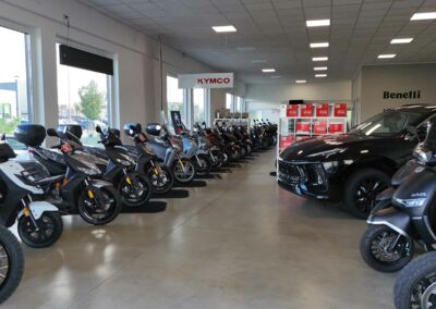 Il nostro Showroom è ubicato sulla strada statale che collega Mantova a Verona di fronte al centro commerciale che ospita l’Euronics e la nuova LIDL; è stato recentemente ristrutturato per accogliere il reparto moto. Vanta di un salone espositivo coperto di 300mq con sei vetrine, dove potrai trovare esposte una sessantina di moto in pronta consegna.